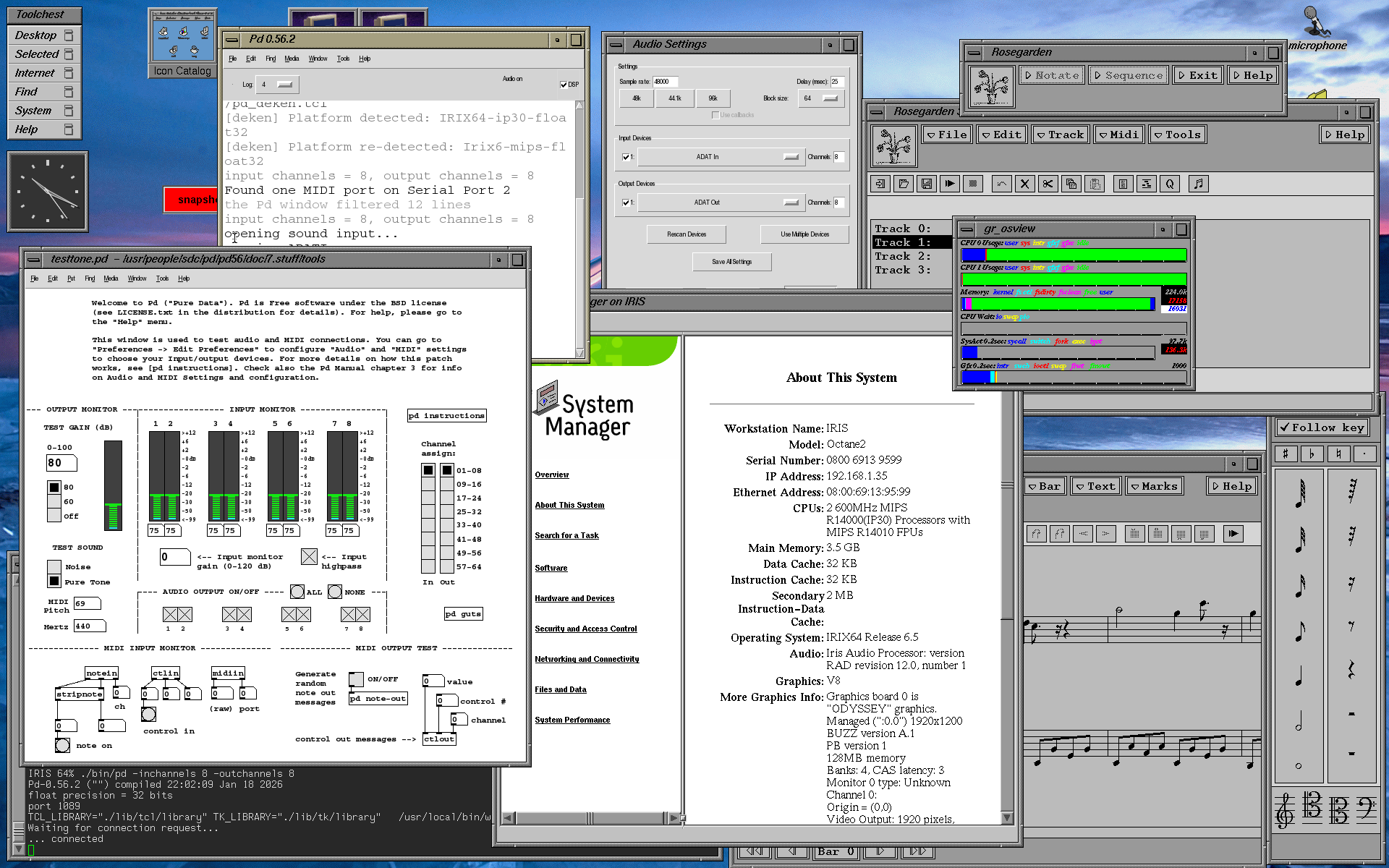One thing I still have to check, it looks like for the 8-ch ADAT Audio the adc~ inputs are reading in the dac~ outputs (instead of reading the incoming audio); so really ADAT output works now, input will need an extra look. When using analog stereo I/O, both input and output work ok.